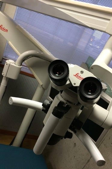従来から2.5倍の拡大鏡とLEDヘッドライトを使用し治療を行っていましたが、このたび最大20倍までの拡大視野で治療を行うことのできるライカ製歯科用マイクロスコープを導入しました。