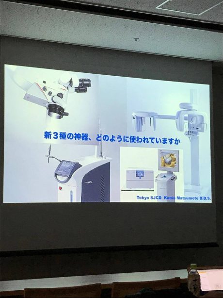 今回は東京都でご開業の松本邦夫先生を講師に招聘し、日常診療で取り組んでいらっしゃるマイクロスコープ・エルビウムヤグレーザー・CTの医療器機を駆使した、低侵襲で精密な根管治療・補綴治療をたくさんの臨床例を提示してもらいながらご講演いただきました。