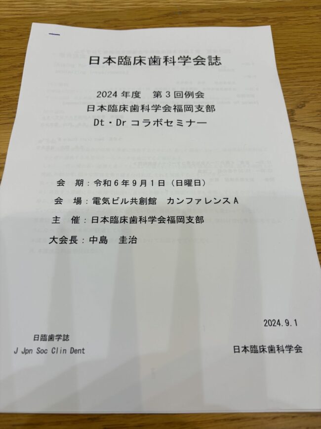 9月1日(日曜日)に所属する日本臨床歯科学会福岡支部研修会に参加してきました。